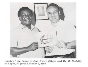 Other distinguished visitors strengthened the small community: Hand of the Cause Enoch Olinga and his wife Elizabeth, who radiated courage and love; Vajiheh met them in 1970. Hand of the Cause ‘Alí-Muḥammad Varqá (1972), during a visit to Obala near Yaoundé.